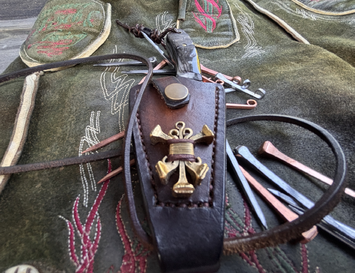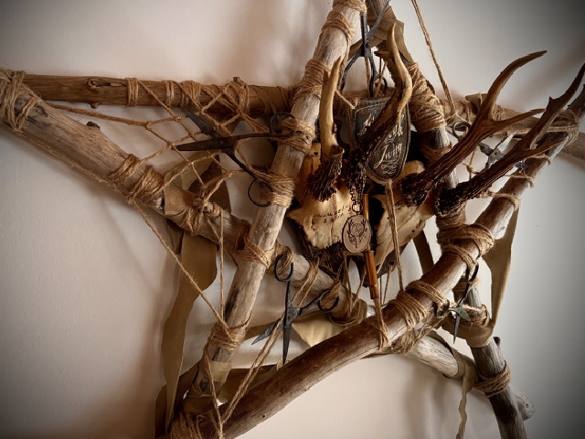 aus Knochen, altem Treibholz, rostigen Scheren und skurrilen Fundstücken, inspiriert von einer uralten Vorstellung bayerischer Schutzzeichen gegen böse Geister und die Drud. Diese Arbeiten verbinden mythische Symbolik mit rauer Materialität.